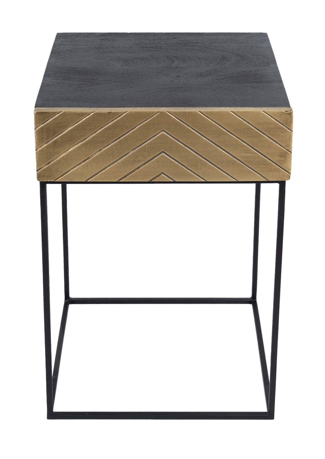 Het stevige gebruik van messing, mango hout, MDF en staal zorgt niet alleen voor een luxe uitstraling, maar ook voor duurzaamheid en kwaliteit. Met zijn praktische formaat staat JADE Goud prachtig naast je bed, maar ook als stijlvol bijzetkastje in de woonkamer of hal.